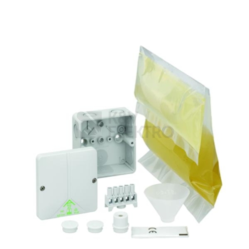 Spojovací krabice, se stupněm krytí IP68, Jmenovitý průřez 4mm², Ui=690V AC, Certifikováno podle VDE (DIN EN 60670-1/-22 (VDE 0606-1/-22) & DIN VDE V 0606-22-100), Vyrážecí membrány, M20/M25, (1 ze zadu, 8 z boku), Vnitřní místa pro připevnění, s šroubovými svorkami k zalití, pro montáž v záplavových oblastech a v zemině bez dopravní zátěže, šedá, s šroubovou svorkou, 5-pólovou-2,5/4mm² (4 x 1,5² / 4 x 2,5² / 4 x 4²), Rozměry: 94 x 94 x 55mm, Přiložené příslušenství: 4 dvojité membránové vývodky IP66 M25 rozsah těsnění 9-16mm, 2 uzavírací zátky M20, 1 vývodka M20, 1 sáček lité pryskyřice GHB2 s plnicím trychtýřem