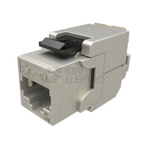 Samořezný stíněný keystone CAT5E Samořezné keystony Solarix se vyznačují velmi jednoduchou instalací, ke které není nutné použít zařezávací nástroj. Tyto keystony bez problémů splňují parametry specifikované v mezinárodních standardech strukturované kabeláže ANSI/TIA 568, ISO/IEC 11801 a EN 50173 pro kategorii 5E a třídu vedení Class D, včetně všech nejnovějších dodatků. Keystony jsou osazeny 180° samořeznou svorkovnicí, která je označena barevným schématem podle typu zapojení, a to buď podle standardu T568A, nebo T568B. Do této svorkovnice je možné zařezat kabely typu drát s vodiči o velikosti AWG 26 – 22. Standardní barva nestíněných samořezných keystonů Solarix je černá, u stíněné verze je tělo modulu opatřeno stříbrnou kovovou částí. Díky svým kompaktním rozměrům jsou tyto samořezné keystony kompatibilní s modulárními zásuvkami většiny výrobců (např. ABB, Schneider, Legrand, Moeller, Hager, Obzor atd.). Omezení kompatibility se vztahuje jen na zkosené zásuvky v designech ABB Alpha exclusive, Future Linear, Solo a Impuls. Technické parametry: Kategorie: CAT5E Podporované protokoly: 2.5G/5GBASE-T a nižší Stínění: ano Min. životnost portu: 1000 zapojení/odpojení Krytí kontaktů: 50 µ zlata a 100 µ niklu Svorkovnice: samozářezová Min. životnost svorkovnice: 200 zařezání Velikost a typ vodiče: AWG 26 - 22, drát Materiál nekovových částí: FR plast podle UL94-0 Barva: černá Skladovací teplota: -40 až 70°C Provozní teplota: -10 až 60°C Max. provozní vlhkost: 93%