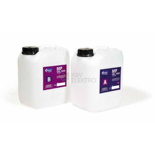 Gel dvousložkový MPGEL plus-1000 (10 litrů - 2x kanystr po 5l), bez expirace, izolační zalévací gel, rozebíratelné spojení, barva: t ransparentní modrá, doba zpracovatelnosti: cca 3 minuty, doba tuhnutí: cca 12 minut