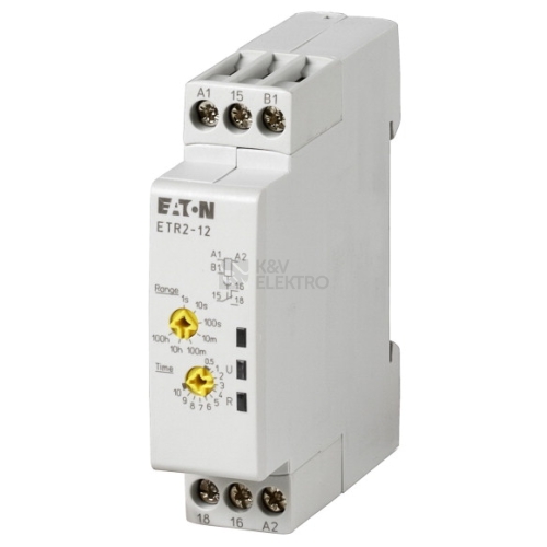 Elektronické časové relé ETR2, 17,5 mm široké, časová základna 0 ,05s-100h, 1 přepínací kontakt se zpožděným odpadem