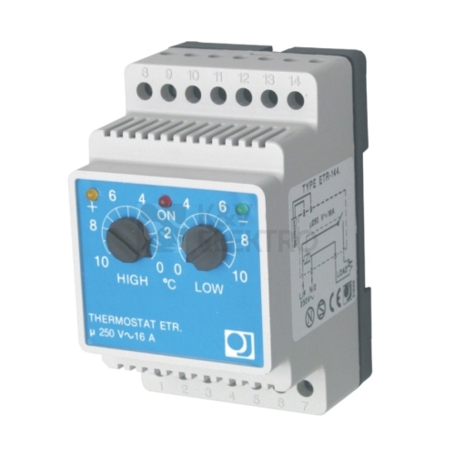 Regulátor pro vyhřívání okapů, termostat spíná, pokud se teplota pohybuje v kritickém intervalu, teplotní rozsah: -10°C...+10°C, výstup: 16A, bez teplotního senzoru