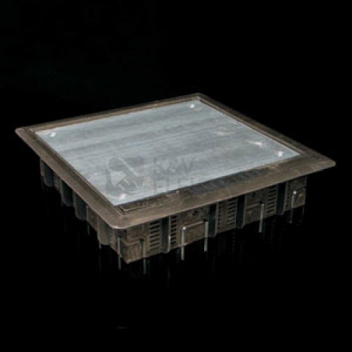 Víko se závěsy čtvercové pro instalaci na podlahovou krabici typu Pandora, provedení v černé barvě RAL 9011, instalace do betonových podlah, prostor pro podlahovou krytinu 5 mm, ocelová deska tl. 3 mm