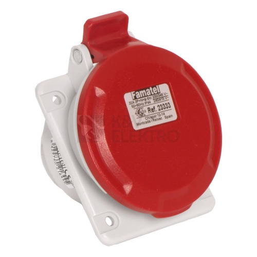 Zásuvka vestavná 23333 IP44/400V/32A/5P 6h, šikmá 10°Průmyslové vidlice, zásuvky a spojky SpeedPRO splňující požadavky norem IEC 60309.Široký sortiment zásuvek a vidlic od 16 A do 125 A byl navržen a vyroben podle nejnáročnějších norem kvality a vyhovuje i těm nejvyšším požadavkům na vodotěsnost, odolnost proti teplotním vlivům a nárazům.Optimální ergonomie - Speciální povrchová úprava zaručuje optimální přilnavost při manipulaci a navíc je zjednodušeno samotné otvírání víčka - vše díky promyšlenému ergonomickému designu.Preciznost - Nerezová bezpečnostní spona chrání vidlici / spojku proti otevření vnitřní části, zároveň zaručuje rychlé otevření a zavření při instalaci kabelu.Šroubová vývodka - Exkluzivní inovovaná kabelová šroubová vývodka s antivibračním systémem uchycení kabelu poskytuje maximální trvanlivost spoje a pohodlnou údržbu.Připojení vodičů - V produktové řadě SpeedPRO jsou všechny šroubky přístupné z jedné strany, není nutné otáčet vidlicí/spojkou během instalace.Snadná montáž - Konstrukce vidlic a spojek umožňuje umístění optimálně dle potřeb instalace díky vestavěným závěsům.Univerzálnost - Konstrukce vidlic a zásuvek je vhodná pro všechny typy aplikací a použití v extrémních podmínkách (vlhkost, prašnost, mastnota,...).