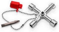 Knipex Klíče ke kontrolním skříním 001103 1103-76MM Pro skříňové rozvaděče, systémy uzavírání plynových, vodovodních a elektrických přípojek. Pro technická zařízení v budovách jako klimatizační a ventilační zařízení, uzavírací ventily, síťové rozvodné desky atd. S nástavcem pro bity (oboustranným): drážka 1,0 x 7 mm a křížová drážka PH2. S adaptérem pro bity 1/4' na upevňovacím řetízku. Přídavný držák násadek pro násadky ¼' v jednom rameni. Zinkový tlakový odlitek. Dlouhé provedení, celková délka ramen: 76 mm. Doplňkový čtyřhran 5 mm.