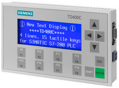TD400C text display, 4-tier for SIMATIC S7-200 with cable (2.5m) and installation accessories, Individually configurable user interface, Configuration with STEP 7 Micro/WIN V4 SP6