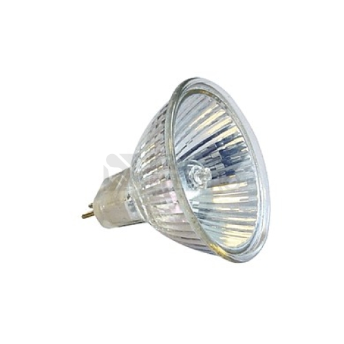 Reflektorová halogenová žárovka 24V Ø50 mm s pinovou paticí a krycím sklem.