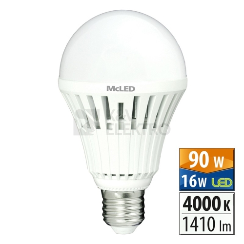 LED žárovka s výkonem 16W, která nahrazuje 90W halogenovou má šroubovací patici E27. Její životnost je kolem 30 000h. Barva vyzařovaného světla je denní bílá, který je vhodná do prostor chudých na přirozené denní světlo, můžete pod ním dlouhodobě pracovat nebo jím nahradit nedostatek světla během zimních měsíců.