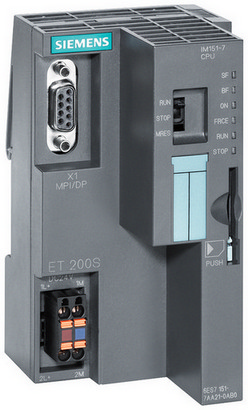 SIMATIC DP, IM151-7 CPU for ET200S, 128 KB work memory with integrated PROFIBUS DP interface (9-pole D-sub socket) as DP slave, without battery SIMATIC MMC required