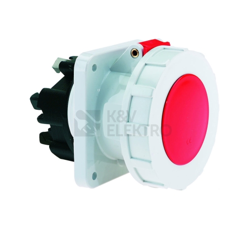 CEE zásuvka vestavná přímá, Quick-Connect63A 5p (3P+N+PE) 400V (200/346 do 240/415V~) 6h IP67 frekvence: 50 a 60Hz kód barvy: červená RAL 3000 kontakty: nosič kontaktů je vyroben z materiálu odolného vůči vysokým teplotám, kontakty jsou vyrobeny z mosazi, povrch kontaktů je poniklovaný maximální průřez vodiče: 25,0 mm2materiál krytu: polyamid způsob připojení: bezšroubové pružinové klecové svorkybarva: víčko sklopné červené, bajonetový uzávěr šedý, kryt šedý rozměry: výška 114 mm, šířka 111 mm, hloubka 146 mm rozměr příruby: svisle 107 mm, vodorovně 100 mm rozteč montážních otvorů: vodorovně 85 mm, svisle 77 mmdalší technické vlastnosti:bezšroubové připojení vodičů QUICK-CONNECT je ověřený, trvanlivý, bezpečný a zcela bezúdržbový systém odolný proti nárazům, vibracím a výkyvům teplot. QUICK-CONNECT s optimálně nastaveným přítlakem svorky na připojovaný vodič zcela eliminuje nedostatky šroubových spojení (možnost přetažení, nebo nedotažení šroubků, slaněné vodiče není třeba ukončovat dutinkami)barevné označení vstupů, pro správné zapojení jednotlivých vodičů (dodržení sledu fází u třífázové elektrické soustavy)
