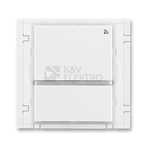 Vysílač radiofrekvenčního (RF) signálu dvojtlačítkový, nástěnný. Při stisknutí jednotlivých částí hmatníku se vyšle odlišný kód (lze tak nezávisle ovládat jeden nebo dva přijímače). Napájení: Li článek 3 V, typ CR 2450 (je součástí dodávky) Počet ovládaných kanálů: 2 Provozní kmitočet vysílače: 868 MHz Dosah: až 150 m (ve volném prostoru) Automatické omezení doby vysílání: 60 s Pracovní teplota: –20 °C až +55 °C Vysílání a pokles napájecího napětí jsou indikovány LE diodou. Pro nástěnnou montáž (pomocí dodávaných oboustranně lepicích terčíků nebo vrutů) Neumísťovat na kovovou podložku! Design: Time, Element Barva: bílá/ledová bílá Pozor: přístroje s rozdílnou pracovní frekvencí nejsou zaměnitelné!