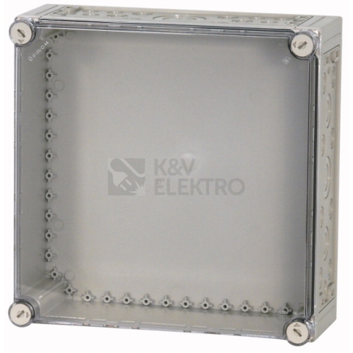 Skříňka s průhledným víkem, material: Polykarbonát, odolná proti nárazům, stupeň krytí IP65, patentované upevňovací šrouby víka s in tegrovaným vyrovnáním přetlaku, s metrickými vylamovacími otvory ve všech bočnicích, přívod vedení nahoře a dole vždy 1xM50/32, 2xM40/25, 8xM25/16 a 2xM20, po straně vždy=1xM63/40 a 6xM25/16 a 10xM20 a 2xM16, upevňovací oka k upevnění na stěnu, upevňovací šrouby s možností plombování, bočnice vyrážecí, jako panelové kryty lze obestavět přidáním bočnic, RAL 7032, štěrkově šedá (dolní část skříňky), průhledná, bezbarvá (víko), vestavná hloubka s montážním plechem=125 mm, provedení krytu: průhledné, provedení dolní díl: předem ražené, kryt lze volitelně dovybavit válcovým zámkem DVZ...-CI