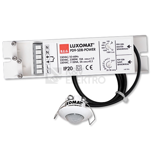 Minidetektor přítomnosti speciálně pro vlhké prostoryBezpotenciálový spínací kontaktProvedení detektor MasterMožnost připojení Slave detektorůDalší funkce jsou nastavitelné dálkovým ovládánímPružinové svorky pro jednoduchou a rychlou montáž do podhledů a svítidelVčetně krycího kroužku o Ø 45 mm a krycích lamelNapětí : 230 V AC ±10% 50 HzRozměry : hlava senzoru: Ø 36 x 28 mm, zdroj napájení 154 x 38 x 25 mmSpotřeba elektrické energie : 2,2 WDetekčním rozsahem : vertikální 360°Dosah : max. Ø 10 m křížem max. Ø 6 m přímo max. Ø 4 m sedícíVelikost snímaného prostoru pro nepřímý pohyb, v případě montáže v doporučené výšce : 79 m² / 2,5 m montážní výška(in translation): 2 m / 5 m / 2,5 mStupeň krytí : IP65 / třída IIIOkolní teplota : -25 °C až +50 °CBydlení : obal UV a nárazuvzdorný polykarbonátDélka kabelu : 350 cm kanál 1 (ovládání osvětlení - beznapěťový kontakt)Spínací kapacita : 2300 W, cos φ = 1 1150 VA, cos φ = 0,5 300 W LED max. náběhový proud Ip (20 ms) = 80 ATyp kontaktu : 1x µ kontakt, bezpotenciálový bez kontaktuČas dobehu : 15 s – 30 min, impulsPrahová hodnota sepnuti : 20 – 1500 lux měření smíšeného světlaVýrobce: B.E.G. Brück Electronic GmbHBarva: bílá mat, podobný RAL9010Výr. číslo: 92912Typ: PD9-M-1C-SDB-IP65-FC bílá