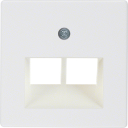 Centrální díl pro 2x RJ45, Cat.3, Cat.5e a Cat.6, 45° šikmý vývod, systém střed. dílů, bílá, lesk