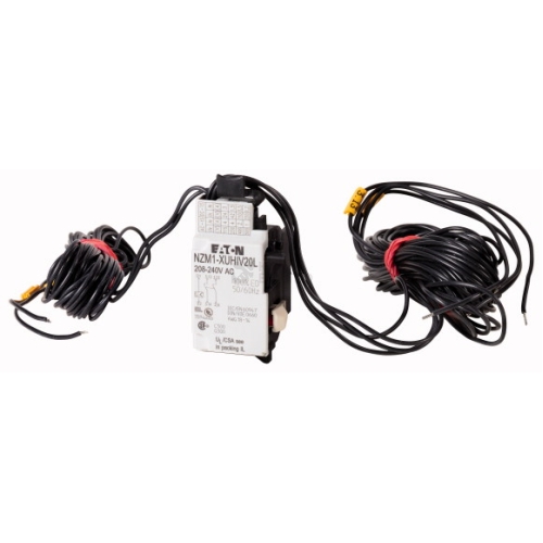 Volitelné příslušenství k řadě výkonových spínačů NZM nabízí bohaté portfolio možností využití při nasazení na celém světě. Montáž je vždy pružná a jednoduchá díky modulárním funkčním skupinám. Upozornění: k předbíhajícímu připojování podpěťové spouště při použití hlavního vypínače a také pro blokovací obvody a obvody ke snížení zátěže. Lze použít pro zařízení nouzového vypnutí ve spojení s tlačítkem nouzového vypnutí. Jestliže vypínací spoušť vede napětí, brání bezpečně dotyku hlavních kontaktů spínače při pokusech o zapnutí. Předbíhání pomocných kontaktů při zapínání a vypínání (ruční ovládání) cca 20 ms. Nepoužívejte ve spojení s dálkovým pohonem NZM..-XR.. Podpěťovou spoušť nelze instalovat současně s předbíhajícím pomocným spínačem NZM..-XHIV.. ani vypínací spouští NZM..-XA.. Lze použít pro: NZM1(-4), N(S)1(-4)