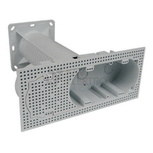 Pro instalaci dvou až tří přístrojů v zateplených fasádách budov tloušťky 100 - 250 mm. Eliminuje vytváření tepelných mostů. Součástí balení jsou kvalitní hmoždinky, vruty pro montáž a přepážka pro oddělení více obvodů. Při instalaci na hrubší omítku je doporučeno utěsnění přístroje silikonem. Robusní konstrukce. Montáž: Při použití záslepky umožňuje montáž 2 přístrojů, bez záslepky 3 přístrojů ve společném rámečku. Před montáží je nutné seříznout nosič včetně přiložené izolace na potřebnou délkou podle tloušťky izolační vrstvy. Nosič se připevní ke stěně pomocí přiložených hmoždinek dle typu zdiva a vrutů. Při montáži zásuvky 400 V se doporučuje připevnění nosiče pomocí chemických kotev. Nosičem se protáhne kabel a vloží zkrácená izolace. Pomocí 4 přiložených šroubů se k nosiči připevní krabice případně deska, na kterých se provede finální montáž. ##VIDEO:https://www.youtube.com/embed/L4GyrLOpTM4##