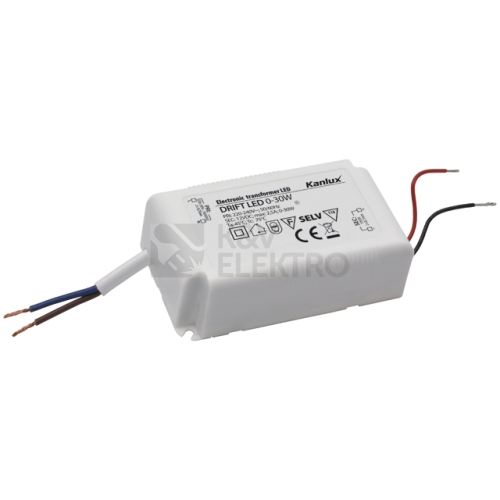Napěťový elektronický transformátor k napájeni LED svítidel stabilizace napětí 12V DC maximální přípustná teplota tělesa transformátoru je Tc: 85°C ochrana proti přetížení a proti zkratu model DRIFT LED 0-6W a 0-30W obsahuje přívody 0,75mm2 o délce 15cm
