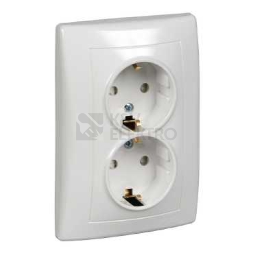 Sedna, zásuvka dvojnásobná schuko 2x(2p+PE) s dětskými clonkami, polar. řada výrobků: Sedna - typ produktu nebo součásti: zásuvka - popis standardu pro zásuvky: ochrané kontakty (schuko) - barva krycí desky: bílá.