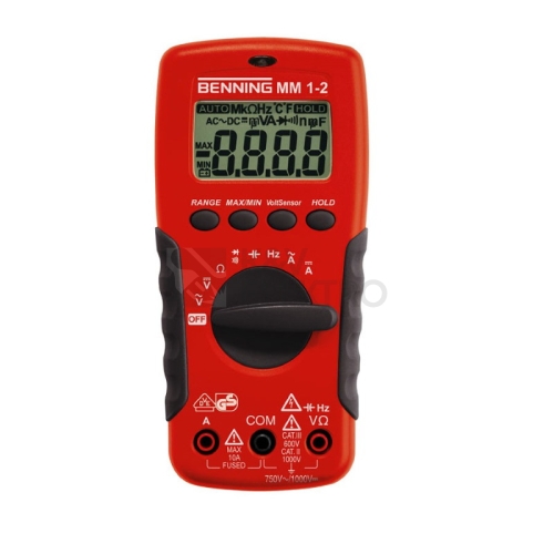 Digitální multimetr s bezdotekovým senzorem napětí. Integrovaný senzor napětí signalizuje fázová napětí akustickým signálem a červenou LED Lokalizuje přerušení kabelů a porouchané žárovky ve volně uložených rozvodech(kabelové bubny,řetězce světel) ze strany napájení fáze Všechny typy základních měření a měření teploty ve vysoce kompaktním skříňovém provedení