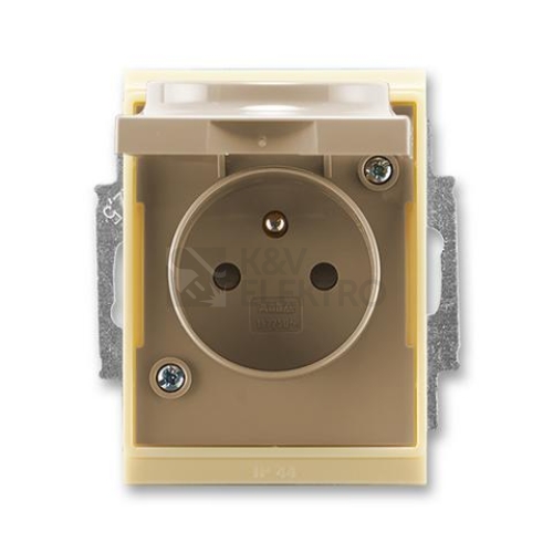 Zásuvka jednonásobná s ochr. kolíkem, s clonkami, víčkem, s drápky, IP44, kávová/led. opálová