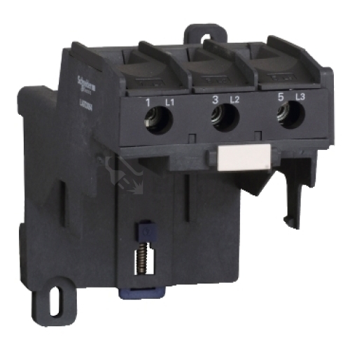 TeSys LRD -svorkovnice - pro relé tepelného přetížení LRD3** - LR3D33** - LR2D35**. Používá se pro samostatnou montáž nadproudových relé a stykače. Umožňuje horní připojení šroubovými svorkami, nacvakávací montáž na 35 mm DIN lištu nebo upevnění šrouby. Splňuje požadavky normy Green Premium (RoHS/REACH).