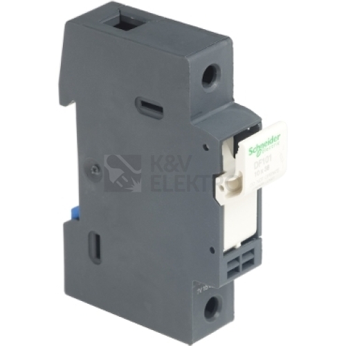 TeSys DF modulární držák pojistek, 1P (1P), pro ochranu ovládacích obvodů až do 32 A/690 V. Používá se s pojistkami 10 x 38 mm až 32 A a zkratovým proudem až na 120kA@400V. Kompaktní (šířka 17,5 mm), lze ji použít v modulárních panelech, nacvaknutím na 35mm lištu DIN, připojení šroubovými svorkami, uzamykatelný bez příslušenství. K dispozici jsou pojistkové spoje (10x38mm aM, typ gG) a pomocná zařízení (sady pro montáž pojistky, nacvakávací značky) (objednat samostatně). Prodává se v šaržích o 12 jednotkách. Certifikováno více standardů (IEC, UL uznáno, CSA, CCC, EAC, Marine), produkt Green Premium (RoHS/REACh).
