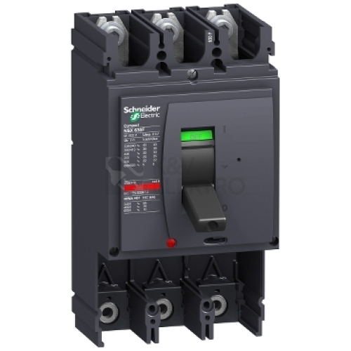 Toto je základní rám 3P pro Compact NSX630F. Compact NSX je navržen pro optimalizaci prostoru a vypínací schopnosti pro všechny standardní a specifické aplikace. Tento základní rám je dodáván bez jednotky spouští a je kompatibilní s libovolným typem jednotky spouští, která musí být objednána samostatně Vypínací schopnost Icu je 36 kA při 415 V stř. 50/60 Hz. Provozní napětí je 690 V stř., 50/60 Hz (omezeno na 440 V stř., 50/60 Hz, pokud existuje proudový chránič). Může být vybaven celou řadou volitelných funkcí a příslušenství. Rozměry jsou 140 mm x 255 mm x 110 mm. Zajišťuje soulad s mezinárodními normami (IEC 60947), CCC, EAC a specifikacemi pro námořní aplikace. Compact NSX630F je součástí architektury EcoStruxure Power společnosti Schneider Electric.