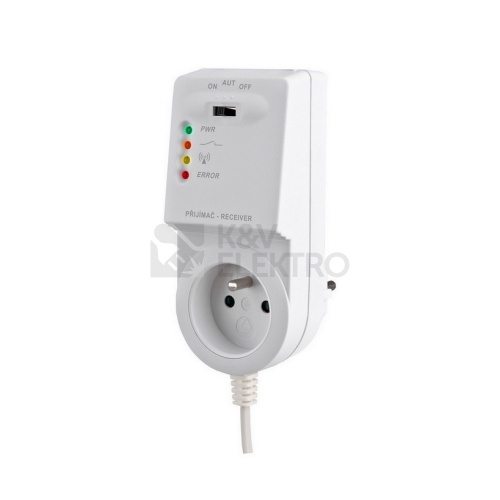 Určeno pro ovládání zdroje tepla Montáž do zásuvky. Výstup - bezpotenciálový kontakt 230V AC/8A.