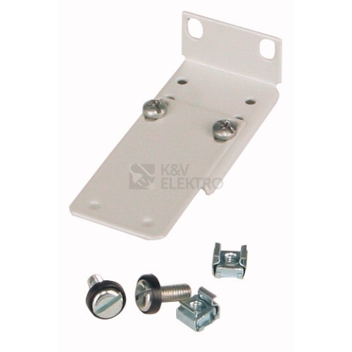 Upevňovací úhelník na dveřní spínač k montáži při aplikacích bez osvětlovací jednotky skříně, montáž na 19z lišty, materiál: ocelový plech práškově lakovaný RAL 7035