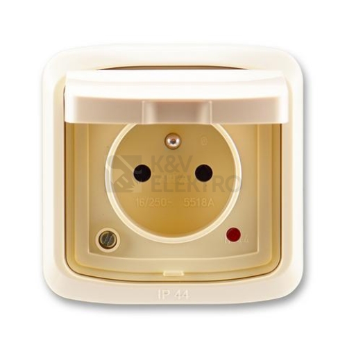 Zásuvka jednonásobná s víčkem, s ochranou před přepětím, IP44, slonová kost