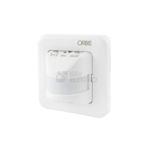Pohybové čidlo ORBIS ORBIMAT, nastavení intenzity světla 5-300 lux, proudové zatížení 2 A, jmenovité napětí 230 V, krytí IP20, úhel snímání 195°