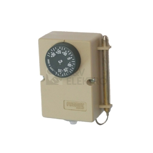 Průmyslový termostat, průmyslový termostat s kapilárou, na stěnu, pro topení i chlazení, teplotní rozsah -35...+35°C, přepínací kontakt 16A, IP 44, kapilára na přístroji