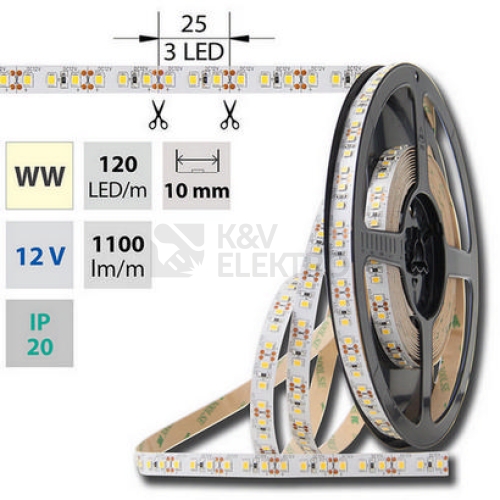 LED pásek je osazen kvalitními chipy o velikosti SMD2835 a z druhé strany je podlepen samolepicí páskou 3M. Je možné ho dělit po 2,5 cm i pomocí klasických nůžek. Všechny LED pásky jsou určeny k dekorativnímu osvětlení, jak pro decentní osvětlení okolo televize nebo skříněk, tak i pro osvětlení kuchyňských linek, koupelen, barů, vitrín a jiných míst, kde je vyžadováno silnější osvětlení. Umístění doporučujeme na teplovodivý a nehořlavý povrch. LED pásek má ochranu krytí IP20 a je tudíž určen pouze do prostor, kde nepřijde ke styku s vodou. Díky nízké spotřebě se nemusíte bát účtů za elektriku a nahradit staré osvětlení LED pásky. Hledáte LED pásek v teplé bílé? Nebo dáváte přednost neutrální či studené bílé barvě světla? V nabídce máme také multibarevné RGB LED pásky. Podívejte se na všechny LED pásky v našem sortimentu i ostatní světelné zdroje.