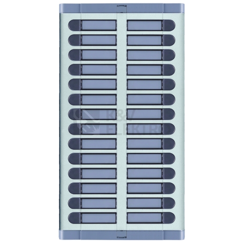 Tlačítkový panel řady 925 s 22 tlačítky ve 2 sloupcích. Včetně instalační krabice pod omítku. Panely jsou tvořeny poměrně silnou čelní deskou z eloxovaného hliníku, zakončenou na horní a dolní straně plastovými lištami.