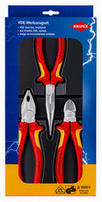 Nářadí v plastovém hlubokotažném obalu s průhledným víkem. Atraktivní prodejní balení s děrováním pro samoobslužný prodej. Rozměry vnější (Š x V x H): 170 x 370 x 40 mm. Kleště s certifikací VDE podle DIN EN/IEC 60900 1000 V, kleště chromované, rukojeti s vícesložkovým potahem.