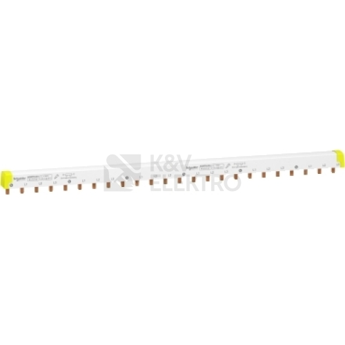 Tento produkt Acti9 představuje výřeznou horizontální přípojnici 24 mod. pro Acti9 iC60 nebo Acti9 iK60. Je určen pro instalace N+3L. Typ je NL1L2L3 (N vodič, Vedení). Jedná se o sadu 1 zařízení. Je vhodná pro 6 zařízení (3P+N). Délka je 430 mm. Celkový počet modulů 18 mm je 24. Průřez kolíku je 16 mm2. Typ elektrického připojení je PIN. Počet fází je 3. počet pólů je 4. Jmenovitý provozní proud Ie při 40 °C je 100 A. Zkratový proud Isc je kompatibilní s vypínací kapacitou jističů Schneider Electric. Jmenovité izolační napětí Ui je 500 VAC. Hodnota provozního napětí Ue je 415 VAC. Barva zařízení je bílá RAL9003. Stupeň znečištění je 3. Podle normy IEC 60695-2-1 požární odolnost při 960 °C do 30 s. Vyhovuje normám IEC 60947-7-1 a IEC 61439-2.
