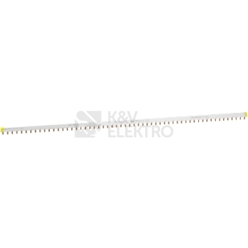 Tento produkt Acti9 představuje výřeznou horizontální přípojnici 57 mod. pro Acti9 iC60 nebo Acti9 iK60. Je určena pro instalace N+L1. Typ je NL (N vodič, Řádek). Jedná se o sadu 1 zařízení. Je vhodná pro 28 zařízení (1P+N). Délka je 1000 mm. Celkový počet modulů 18 mm je 57. Průřez kolíku je 16 mm2. Typ elektrického připojení je PIN. Počet fází je 1. počet pólů je 2. Jmenovitý provozní proud Ie při 40 °C je 100 A. Zkratový proud Isc je kompatibilní s vypínací kapacitou jističů Schneider Electric. Jmenovité izolační napětí Ui je 500 VAC. Hodnota provozního napětí Ue je 415 VAC. Barva zařízení je bílá RAL9003. Stupeň znečištění je 3. Podle normy IEC 60695-2-1 požární odolnost při 960 °C do 30 s. Vyhovuje normám IEC 60947-7-1 a IEC 61439-2.