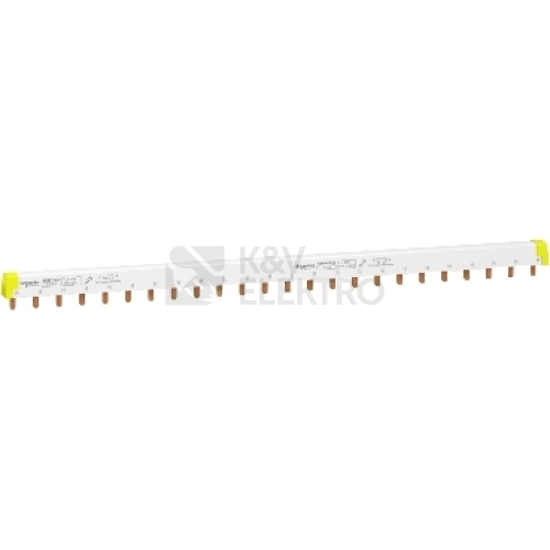 Tento produkt Acti9 představuje výřeznou horizontální přípojnici 24 mod. pro Acti9 iC60 nebo Acti9 iK60. Je určen pro zařízení 3L. Typ je L1L2L3 (řádek). Jedná se o sadu 1 zařízení. Je vhodná pro 8 zařízení (3P). Délka je 430 mm. Celkový počet modulů 18 mm je 24. Průřez kolíku je 16 mm2. Typ elektrického připojení je PIN. Počet fází je 3. počet pólů je 3. Jmenovitý provozní proud Ie při 40 °C je 100 A Zkratový proud Isc je kompatibilní s vypínací kapacitou jističů Schneider Electric. Jmenovité izolační napětí Ui je 500 VAC. Hodnota provozního napětí Ue je 415 VAC. Barva zařízení je bílá RAL9003. Stupeň znečištění je 3. Podle normy IEC 60695-2-1 požární odolnost při 960 °C do 30 s. Vyhovuje normám IEC 60947-7-1 a IEC 61439-2.