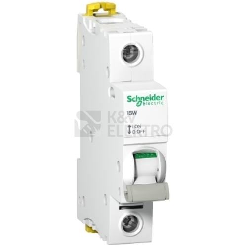Tento Acti 9 iSW je modulární a spolehlivý odpínač. jedná se o 1P, jmenovitý proud 40 A a provozní napětí 240 V AC. Elektrická životnost dosahuje až 15000 cyklů a mechanická odolnost stoupne až na 20000 cyklů. Provozní teplota je -25 °C až +60 °C. Skladovací teplota je -40 °C až +85 °C. Stupeň ochrany je IP20 A IP40 V BOXU. Lze jej nainstalovat na lištu DIN. Šířka v 9mm rozteč je 2. Rozměry jsou (Š) 18 mm x (V) 85 mm x (H) 73 mm. Tento odpínač je používán k ovládání a izolaci. Tento produkt je v souladu s normou ENG/IEC 60947-3.