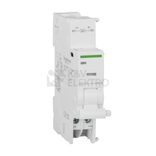 Tato elektrická zásuvka iMN je okamžité podpěťové spouště. Je určen pro Acti9 iC60, iID, iDPN Vigi, iSW-NAN. Zabraňuje opětovnému zapnutí zařízení, dokud není obnoveno vstupní napětí. Nouzový vypínač normálně otevřeným tlačítkem. Zajišťuje bezpečnost napájecích okruhů pro několik strojů tím, že brání neřízenému restartování. Šířka v 9mm rozteč je 2. Vypíná zařízení, se kterým je zkombinováno, pokud jeho vstupní napětí klesne (mezi 70 % a 35 % Un). Napětí ovládacího obvodu Uc je 220...240VAC. Provozní napětí Ue je 200 VAC až 240 VAC. Provozní frekvence je 50 Hz nebo 60 Hz. Lze jej upevnit na lištu DIN pro modulární instalaci. Barva produktu je bílá (RAL9003). Provozní teplota je -25 °C až + 50 °C. Skladovací teplota je -40 °C až +85 °C. Tento produkt splňuje normy IEC/EN 60947-5-1.