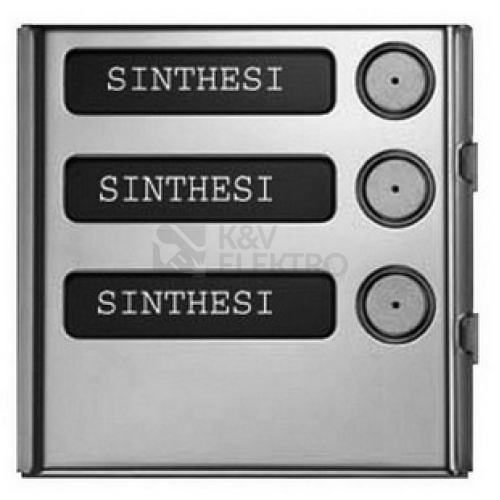 Modul se 3 tlačítky do modulárního tlačítkového panelu SINTHESI STEEL (1158) z leštěné nerezové oceli. Řada SINTHESI STEEL je modulárním řešením vstupního panelu typu antivandal. Jedná se o robustní, avšak elegantní a moderní panel z leštěné nerezové oceli. Jeho mechanická odolnost je definována indexem IK09 a krytí hodnotou IP45.