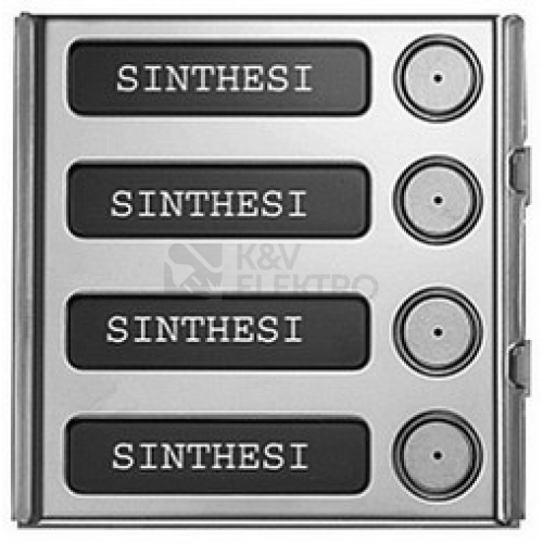 Modul se 4 tlačítky do modulárního tlačítkového panelu SINTHESI STEEL (1158) z leštěné nerezové oceli. Řada SINTHESI STEEL je modulárním řešením vstupního panelu typu antivandal. Jedná se o robustní, avšak elegantní a moderní panel z leštěné nerezové oceli. Jeho mechanická odolnost je definována indexem IK09 a krytí hodnotou IP45.