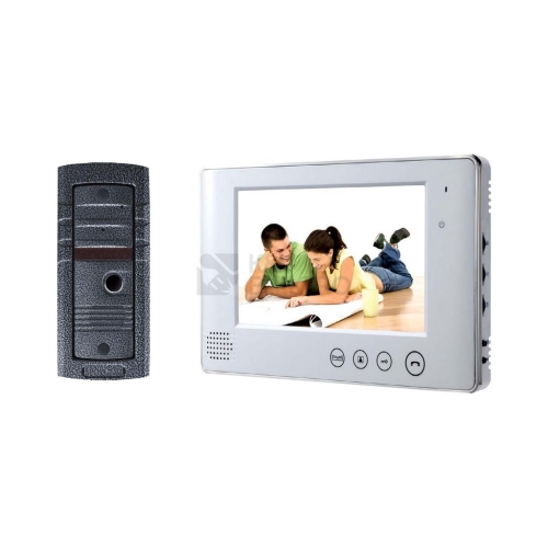 Sada handsfree videotelefonu s venkovní jednotkou v provedení antivandal s miniaturní kamerou. Venkovní jednotka vhodná pro nástěnnou, ale i vestavnou montáž s možností vertikálního natočení 30°. Sada obsahuje barevný monitor, venkovní kameru, stříšku proti dešti, modul pro vestavnou montáž, kovovou patku, napájecí zdroj a 15 m kabel 4 x 0, 3 m 2. Monitor: TFT LCD displej velikost 7“ dotyková tlačítka 14 polyfonních melodií nastavení hlasitosti melodie, hlasu příchozích, jasu a barev možnost otevírání brány (spínací kontakt) napájení DC 15 V rozměry 232 x 140 x 21 mm barva bílá Kamera: skrytá kamera / antivandal materiál eloxovaný hliník 2 nebo 4 žilový systém připojení profesionální kamera CCD noční přísvit až do 4 m rozměry 70 x 158 x 34 mm pracovní teplota -20° až 50°