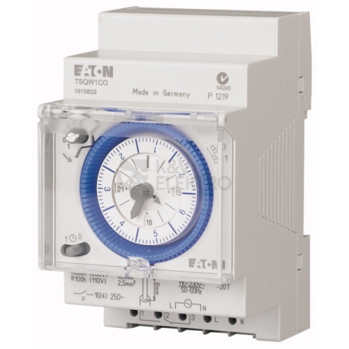 Spínací hodiny rezerva chodu cca 200 hodin, šířka 52,5 mm 7denní program. nejkratší doba sepnutí 2 hod., ukazatel času pro indikaci času a rozpoznávání 12 h/24 h, korekce času je možná ve směru i proti směru plynutí času, předvolba spínání, ruční spínač s 3 polohami: trvale ZAP/AUTO/trvale VYP, indikace stavu sepnutí, pružinové zásuvné svorky DuoFix na 2 vodičů, 1 přepínací kontakt, 16 A/250 V~, 230 V / 45-50 Hz průhledný kryt se zaplombováním.