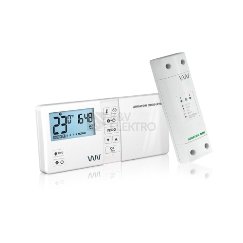 Auraton 2030 RTH je kvalitní bezdrátový termostat s mnoha možnostmi programování. Šetřete náklady na topení a regulujte topnou techniku za pomoci termostatu. Vybírejte z termostatů bezdrátových, dotykových i s otočným knoflíkem či tlačítkem. Popis nahrazuje starší model Auraton 2020 TX / 093 TX 3 programovací cykly: PO-PÁ, SO, NE 8 různých teplot - termostat umožňuje nastavit až 8 teplot během dne s přesností na 1 minutu přesnost regulace 0,2°C / 0,4°C / nově PWM (viz manuál) kompenzace měření teploty - umožňuje upravit měření teploty s tolerancí až 3°C podsvětlený LCD displej - podsvícení displeje, s volbou 3 barev podsvícení, umožňuje čtení a obsluhu termostatu i za špatných světelných podmínek počítadlo času provozu topného zařízení přijímač Auraton RTH (součást balení) je vybaven relé, umožňujícím pracovat do zatížení 16A a technologií, zajišťující nízké opotřebení relé kontaktů Dosah: v průměrné budově, při standardní konstrukci stěn cca 30m, na otevřeném prostranství až 300m. Specifikace Pracovní rozsah teplot: 0°C - 45°C Rozsah měření teploty: 5°C - 35°C Rozsah řízení teploty: 4°C - 30°C Hystereze: +/- 0,2°C / 0,4°C / nově PWM (viz manuál) Počet teplotních úrovní: 8 + dovolená Protizámrazová teplota: 4°C - 10°C Pracovní cykly: týdenní programovatelné Kontrola stavu: LCD displej a LED diody Maximální zatížení: ~16A 250V AC Napájení Auraton 2030 RTH: 2x bat. AA 1,5V Napájení Auraton RTH: 230VAC, 50Hz Dosah bezdrátového signálu: v budově cca 30m / v otevřeném prostoru 300m Podívejte se i na další termostaty Auraton a ostatní termostaty z naší nabídky.