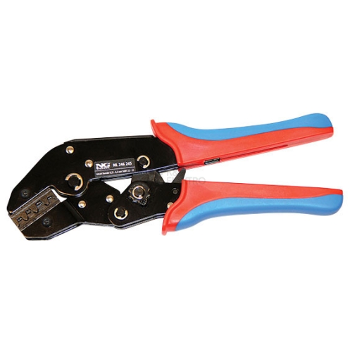Lisovací kleště pro lisování konektorů rozsah lisování AWG 22 -10 ráčnový převod rukojeť vyrobena ze speciální plastické hmoty nová pohodlná dvoukomponentní rukojeť speciálně tvarovaná proti sklouznutí ruky směrem k čelisti ##VIDEO:https://www.youtube.com/embed/8O9y253NZPk##