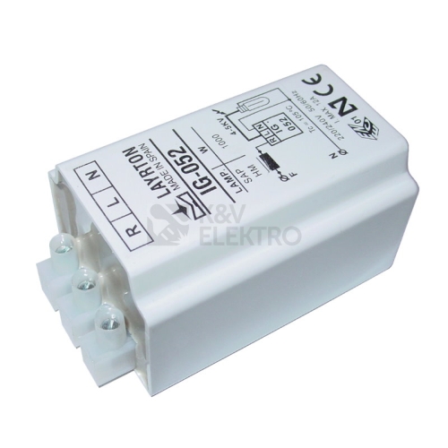 Elektronický zapalovač IG pro vysokotlaké výbojky a halogenidové výbojky. Zapalovače typu IG splňují požadavky evropských norem a je jim udělena licence na používání Evropského certifikačního systému ENEC. Vysokotlaké výbojky sodík: 400, 1000 W, halogen: 1000 W.