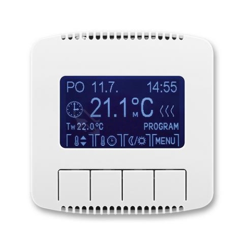 Termostat univerzální otočný (ovládací jednotka), volitelná funkce prostorového, nebo podlahového termostatu s lineárním nastavení teploty. Pro kompletaci přístroje je nutné použít spínací jednotku 3292U-A00003 Pořiďte si univerzální pokojový termostat ABB Tango. Ten nabízí volitelnou funkci prostorového, podlahového nebo kombinovaného termostatu. Základní program nabízí volbu ze 2 přednastavených teplot (komfortní a útlumové) a rozšířený program navíc i možnost libovolně nastavitelné teploty. Snímač teploty pro podlahové vytápění 3292U-A90100 není součástí balení. Termostat ABB Tango umožňuje nastavení teploty 0 °C až + 50 °C. Umožňuje použít manuální provozní režim i automatický (1 základní nebo 3 rozšířené časové programy). Časový program nabízí až 70 časových značek s rozlišením 5 minut, pro jednotlivé dny v týdnu nebo Po-Pá, So-Ne, Po-Ne. Další funkce termostatu ABB Tango, které zajisté oceníte, jsou softwarové vypnutí, volba topení nebo chlazení, jas a kontrast displeje, zámek tlačítek, volba teplotního snímače, minimální a maximální limitní teplota, vnější ovládání kontaktem, adaptivní regulace, omezení nastavitelných teplot, počítadlo provozních hodin, protimrazová ochrana, ochrana ventilů, inverze funkce výstupu, automatický přechod zimní/letní čas či volba jazyka (CZ, EN, RUS). Rezerva chodu činí cca 90 dní (dobíjecí Li článek). Podívejte se i na další kvalitní termostaty ABB, případně zvažte pořízení termostatu s dotykovou obrazovkou. Vybírat můžete také z obdobných výrobků značek Elektrobock, Schneider, Elko EP nebo Legrand. Prostorovými termostaty můžete efektivně regulovat například podlahové vytápění, elektrické přímotopy či akumulační kamna. Podívejte se také na všechny produkty populární řady ABB Tango. O společnosti ABB ABB je švédsko-švýcarská nadnárodní korporace působící ve více než 100 zemích světa. Tato přední světová společnost s více než 120letou tradicí působí především v oblasti energetiky a automatizace. V Česku formálně působí od roku 1992 a zaměřuje se především na kvalitní zásuvky a vypínače. V našem řadu najdete celou řadu produktových řad designových i praktických domovních přístrojů. Nejúspěšnější je série zásuvek a vypínačů ABB Tango. Kolekci funkčních vypínačů a zásuvek doplňují řady ABB Classic a ABB Swing. Zajisté také oceníte nádherné vypínače a zásuvky ABB Solo Carat a ABB Impuls či originální design a klasický materiál porcelánových zásuvek a vypínačů ABB Decento. Kromě tohoto sortimentu najdete v naší nabídce také modulové rozvodnice ABB či stmívače. Prohlédněte si kompletní výběr výrobků ABB na e-shopu E1.cz.