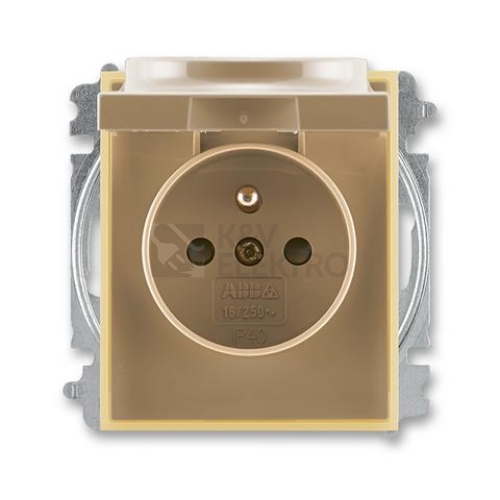 Zásuvka jednonásobná, chráněná, s clonkami a víčkem, s bezšroub. sv., kávová/led. opálová