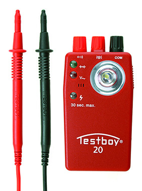 Zkoušečka napětí a průchodnosti Testboy 20 zkoušečka napětí 4,5V zkoušečka průchodnosti (0-20 ohm) a akusticky (0-250 ohm) zkošečka proudu opticky (10mA) a akusticky (2mA) bezdotykové měření napětí vysoce výkonná LED svítilna IP44 přepěťová katergorie CAT III 400V