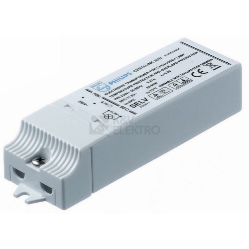 Napájecí transformátor pro halogenové bodovky a LED bodovky PHILIPS. Výstupní napětí 12VAC. PHILIPS napájecí transformátor Certaline 60W 230-240V 50/60Hz 12VAC Tento napájecí zdroj není určen pro LED pásky. Philips Certaline je elektronický halogenový transformátor pro nízkonapěťové halogenové žárovky. Výstupní napětí je 12VAC /střídavé/. Transformátor je vhodný pro 12V halogenové světelné zdroje a 12V LED světelné zdroje PHILIPS. Rozsah zatížení tohoto transformátoru je 20-60W. Životnost transformátoru je 20.000 hodin / 10% selhání /.